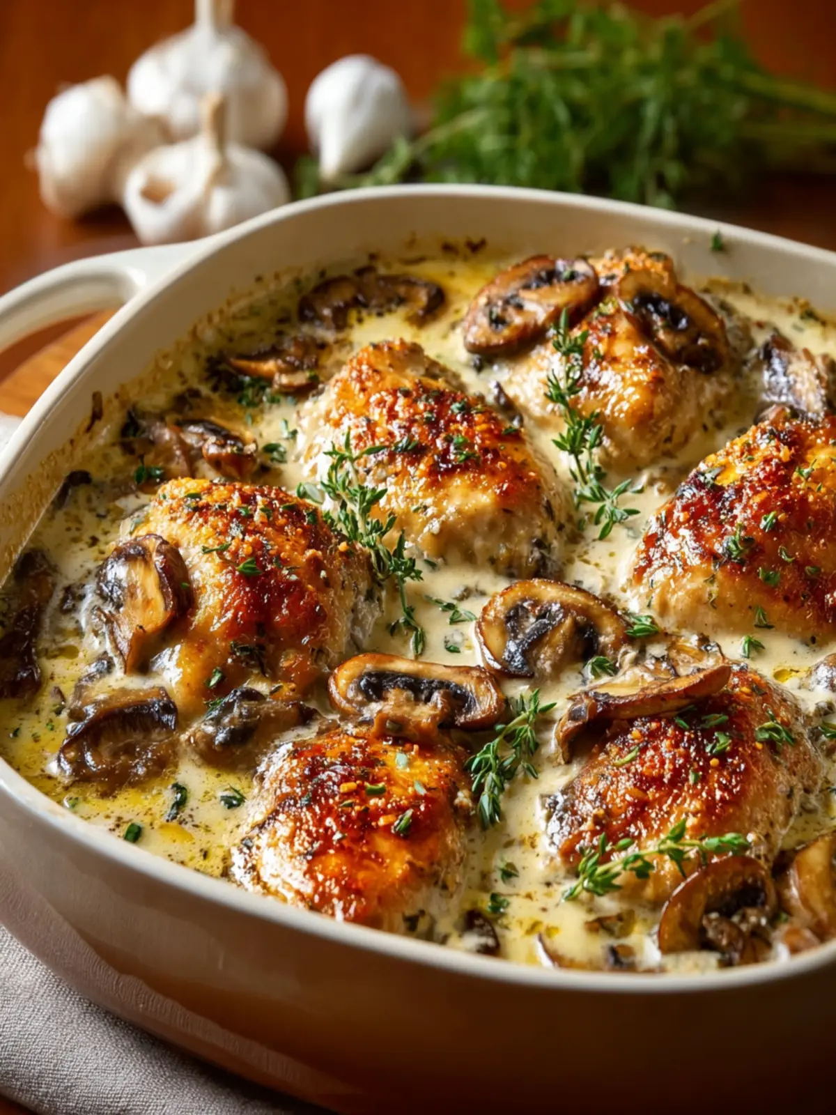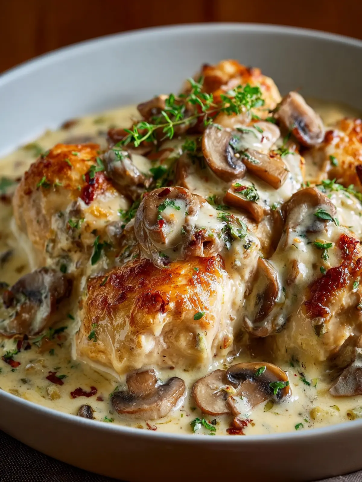 A delicious and creamy chicken dish with mushrooms, perfect for a cozy dinner.