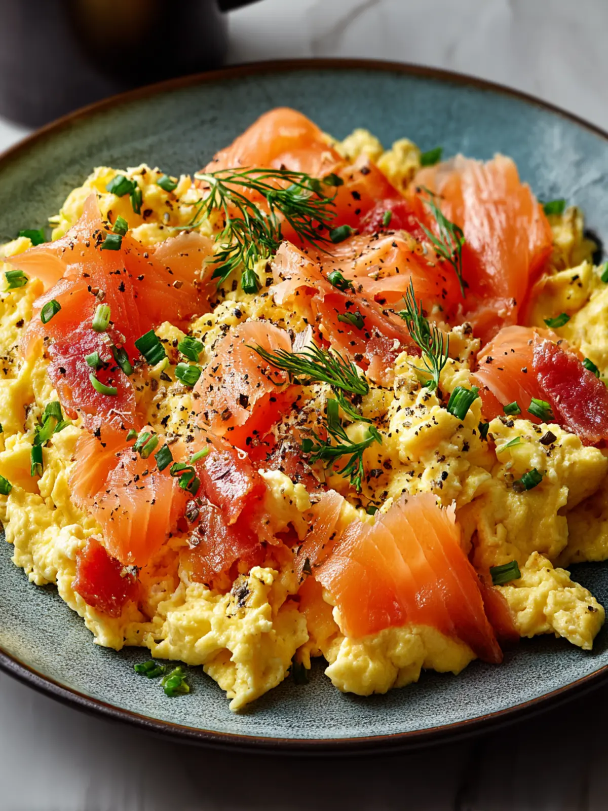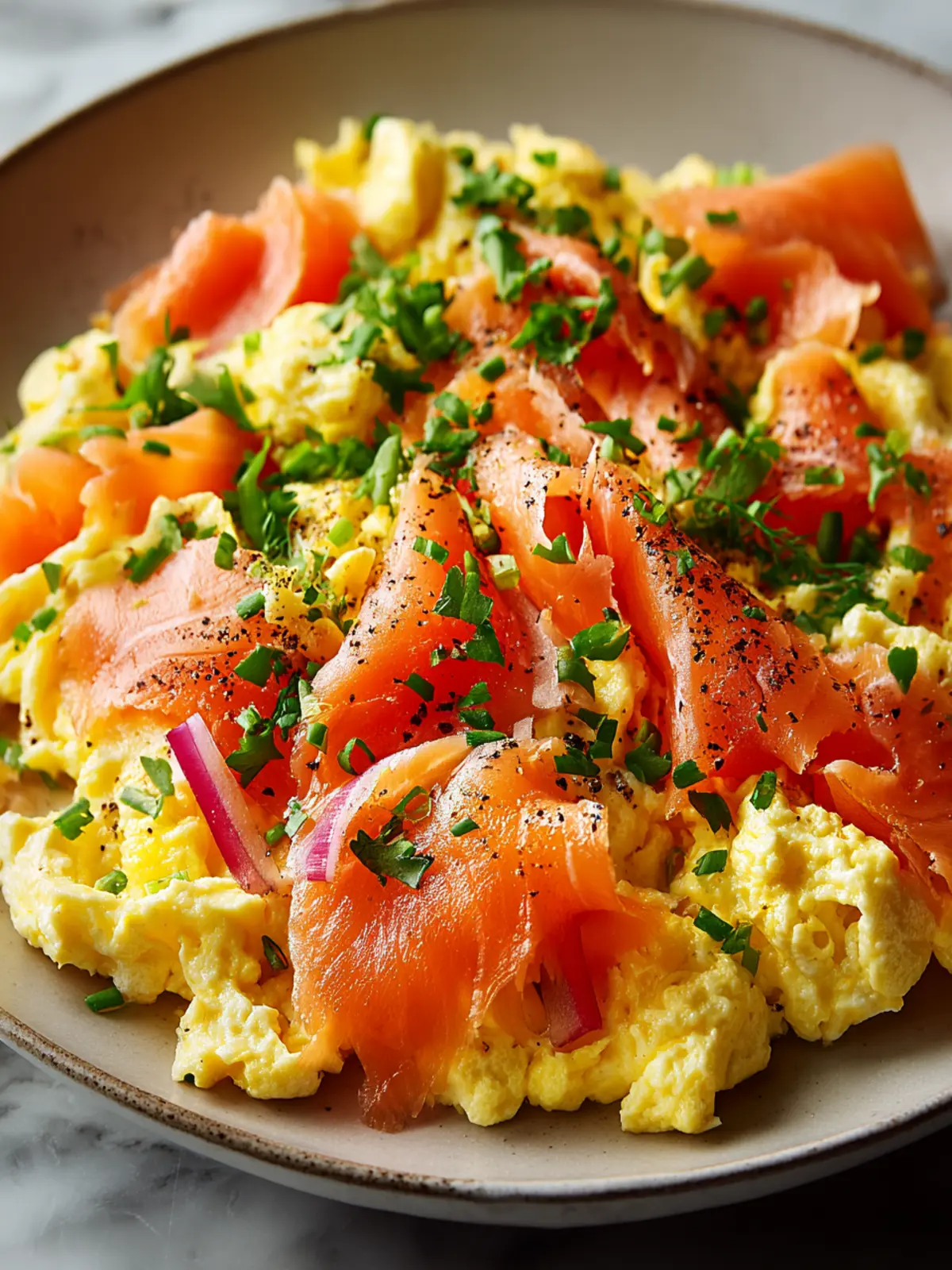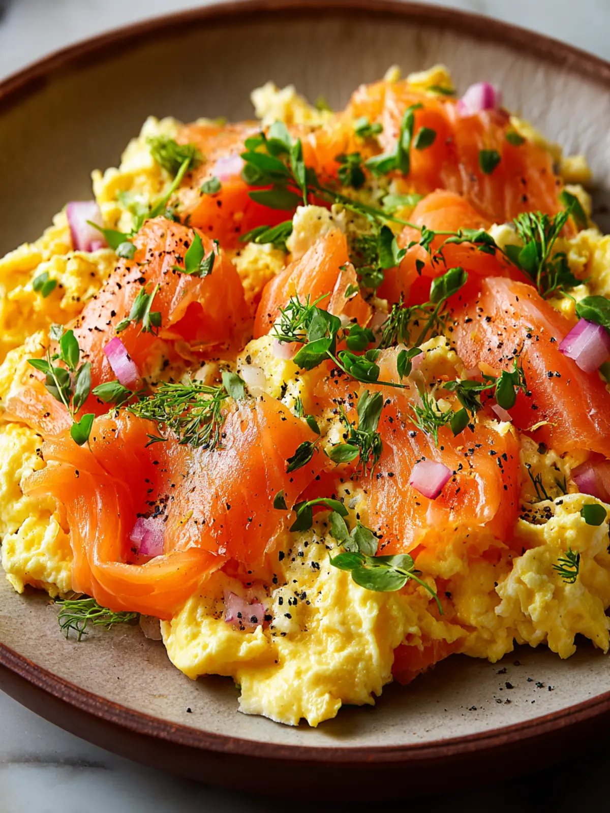 Layered Flavors: The smoky richness of the salmon complements the buttery, fluffy eggs, creating a harmonious blend that dances on your palate. Add in fresh herbs, and you’ve got a dish bursting with freshness.