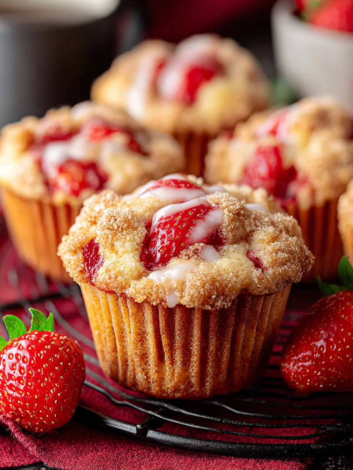 • Crumble Topping: For an extra crunch, sprinkle a cinnamon-sugar crumble over the muffins before baking. This added layer provides a delicious contrast to the juicy strawberries.