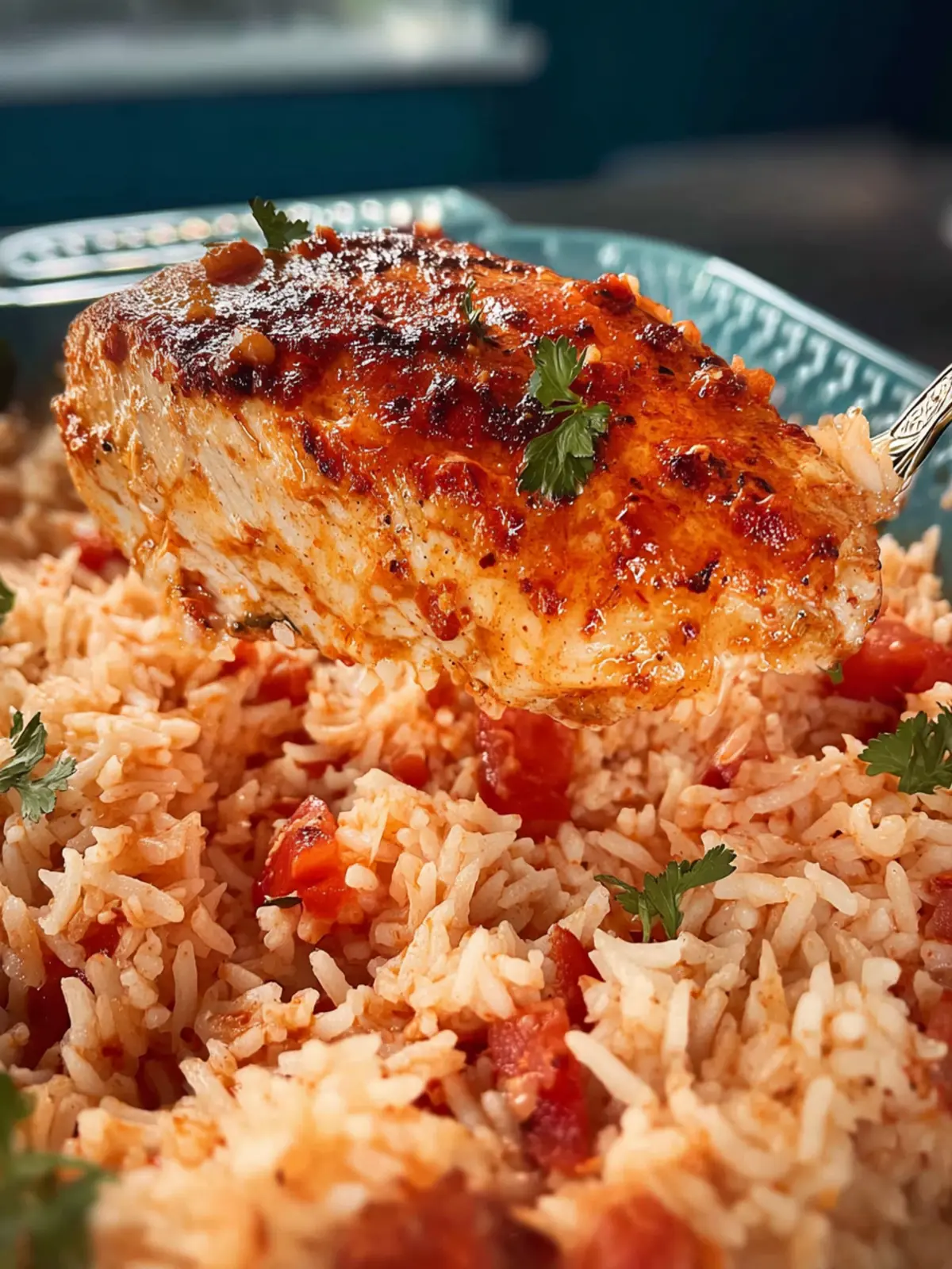 12. After 1 hour, increase the temperature to 375°F, remove the foil, and bake uncovered for 20-25 more minutes, until the chicken starts to brown and the rice is tender.