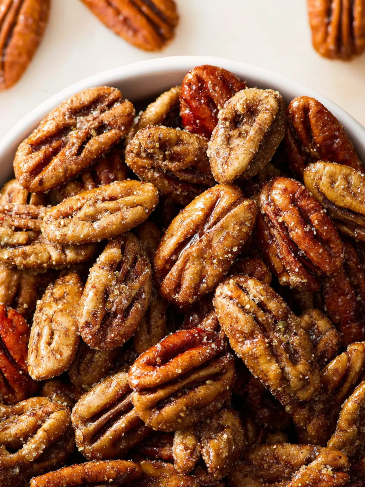 Both granulated and light brown sugar play a pivotal role in sweetening these pecans. The granulated sugar adds a classic sweetness, while the light brown sugar contributes a rich, caramel-like flavor that creates a beautifully balanced taste profile.