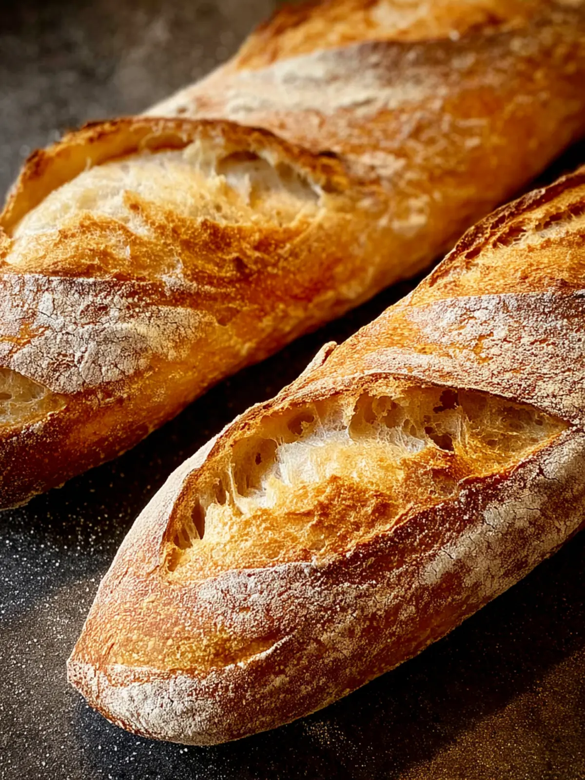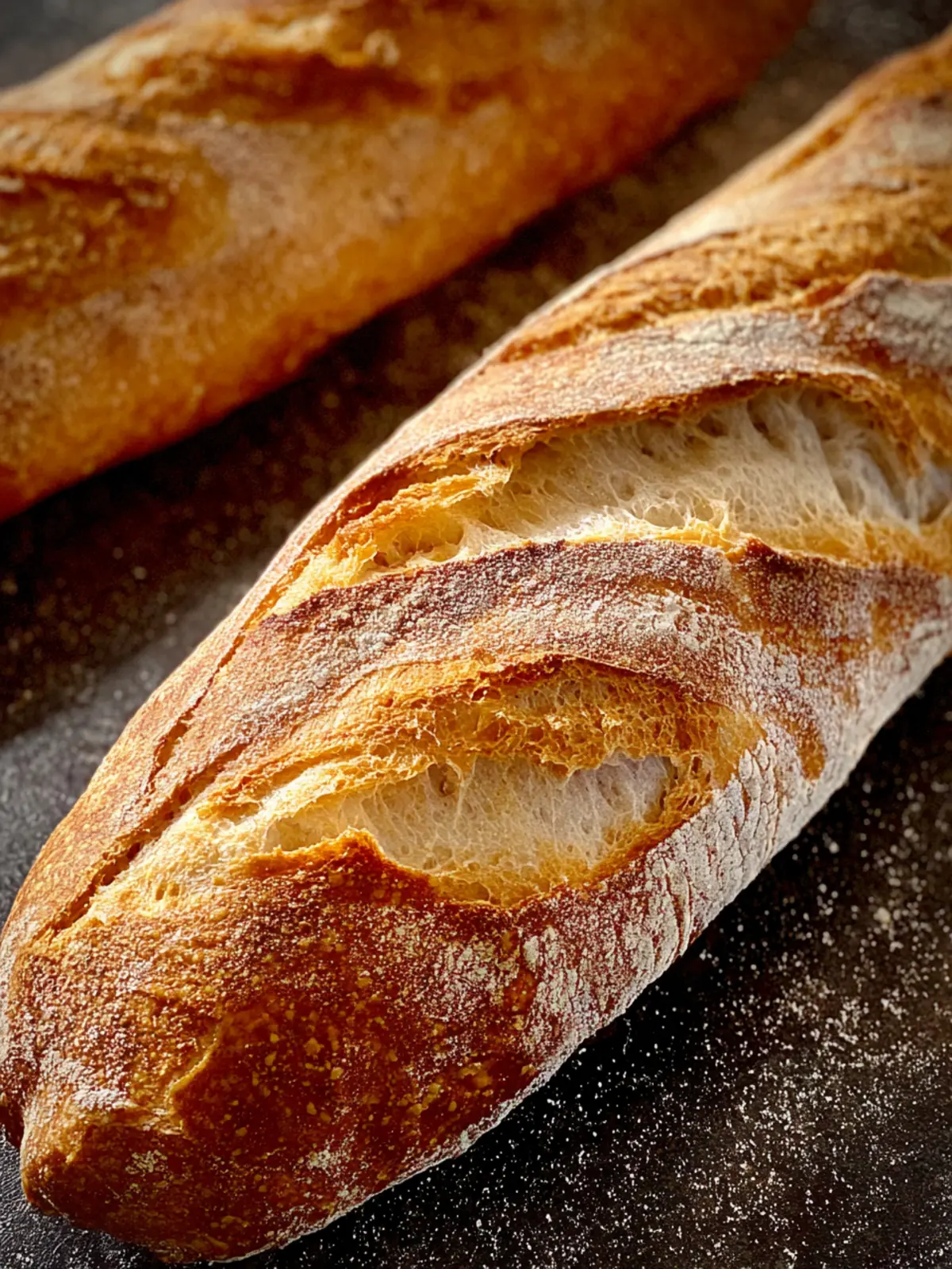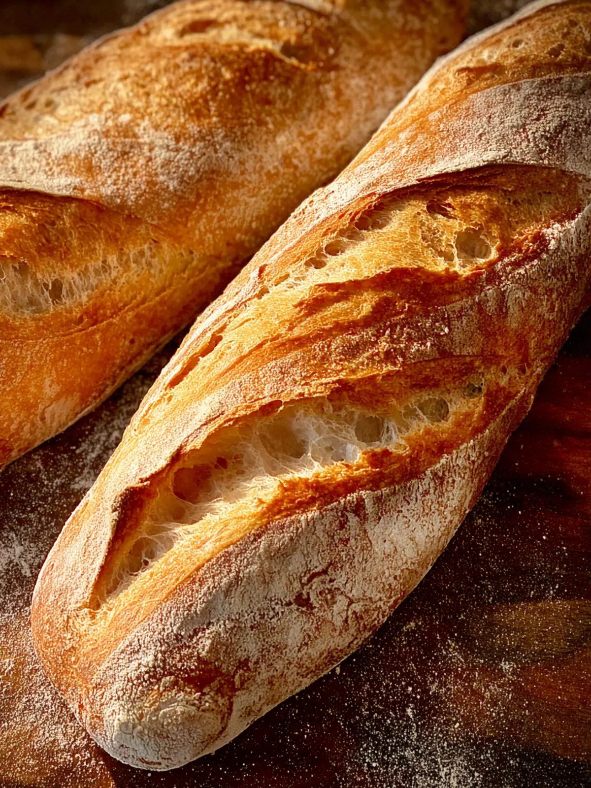 Delicious homemade baguettes that are crispy on the outside and soft on the inside.