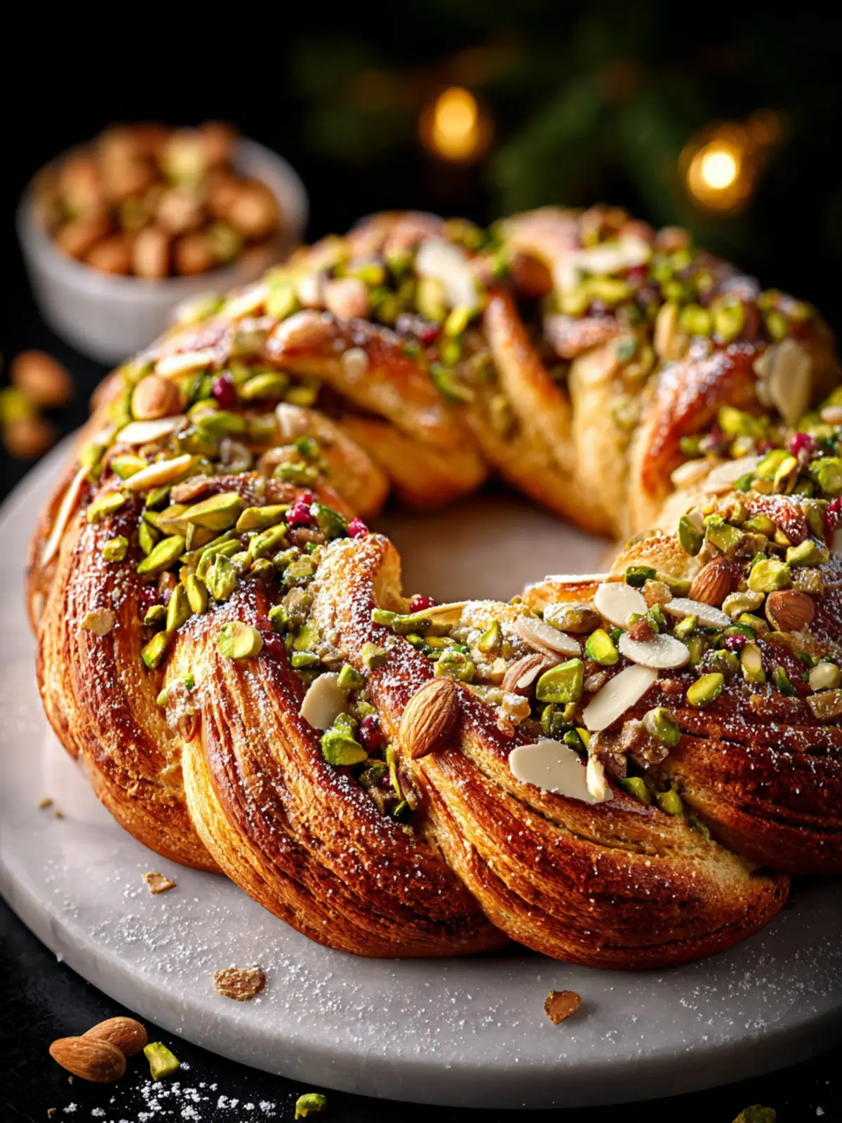 Pistachio Almond Sweet Bread Wreath: Irresistibly Flavorful Delight