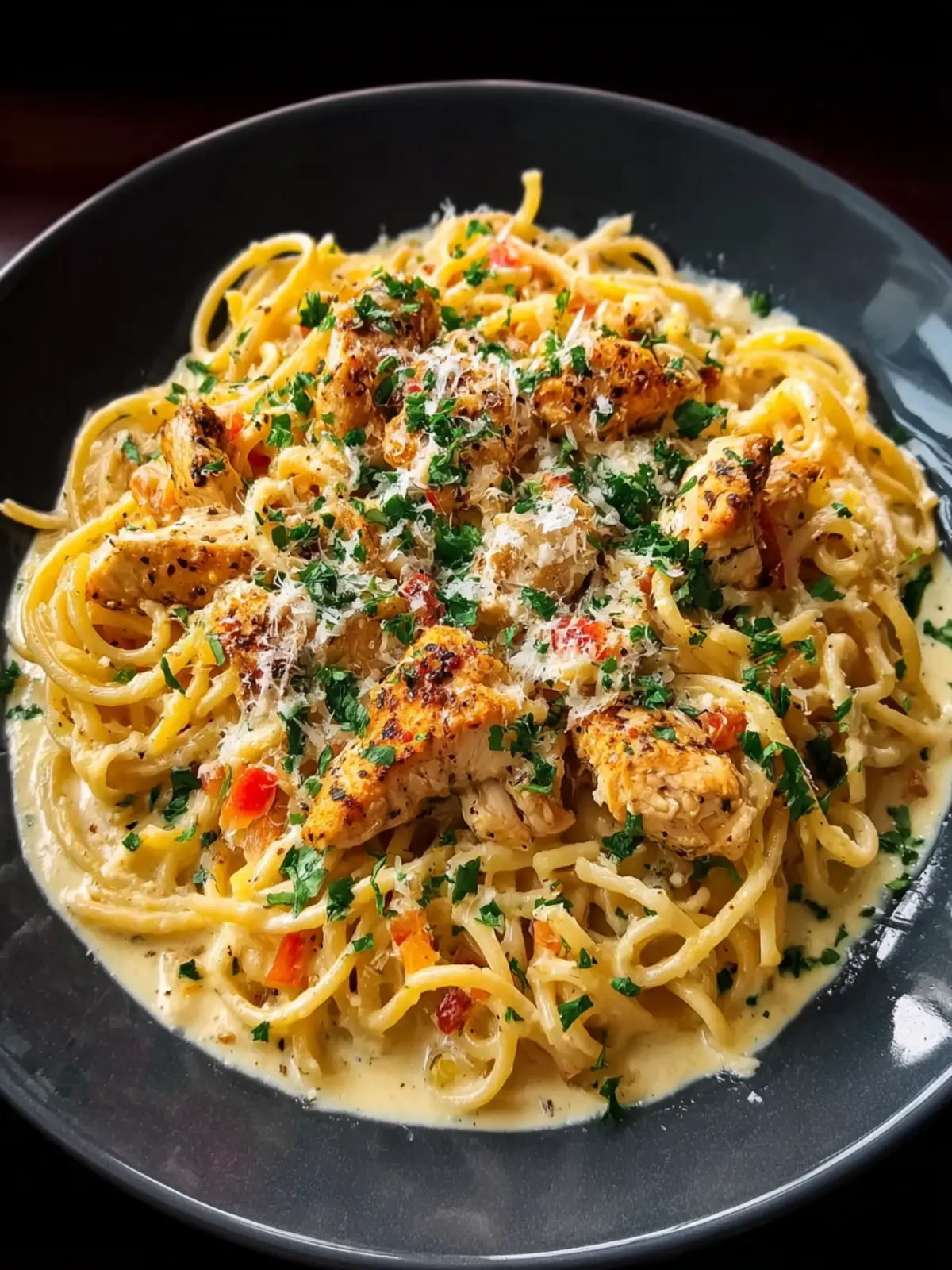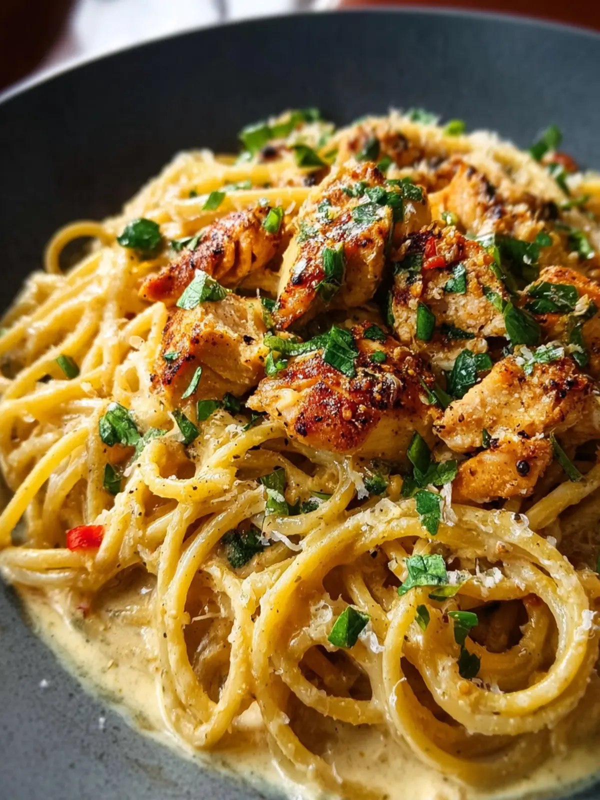 Spicy Cajun Three Cheese Chicken Spaghetti in Garlic Parmesan Cream